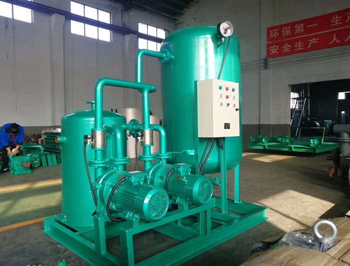 真空泵机组,是以罗茨真空泵为主泵,螺杆真空泵为前级泵的抽气系统,此机组过流部分没有任何液体作工作液,压力不受水温影响,对被抽工艺气体不产生二次污染,便于排出气体的回收。