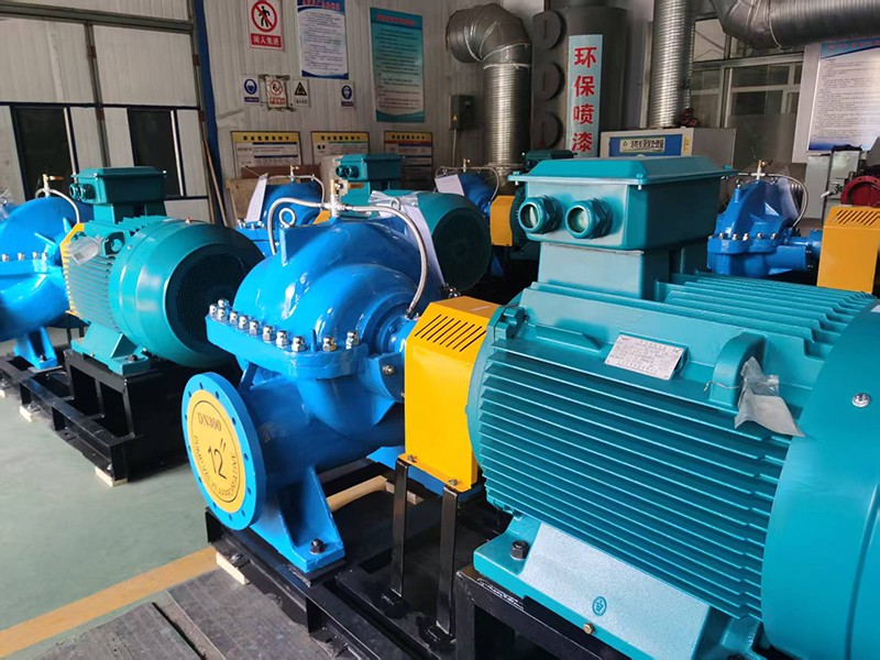 4. 泵体与泵盖构成叶轮的工作室,中高扬程泵的压水室为双蜗室,泵的径向力得到基本平衡,双吸密封环用以减少水泵压水室的水从叶轮处漏回吸水室,在进、出水法兰上制有安装真空表和压力表的管螺纹孔,进出水法兰的下部制有放水的管螺纹。